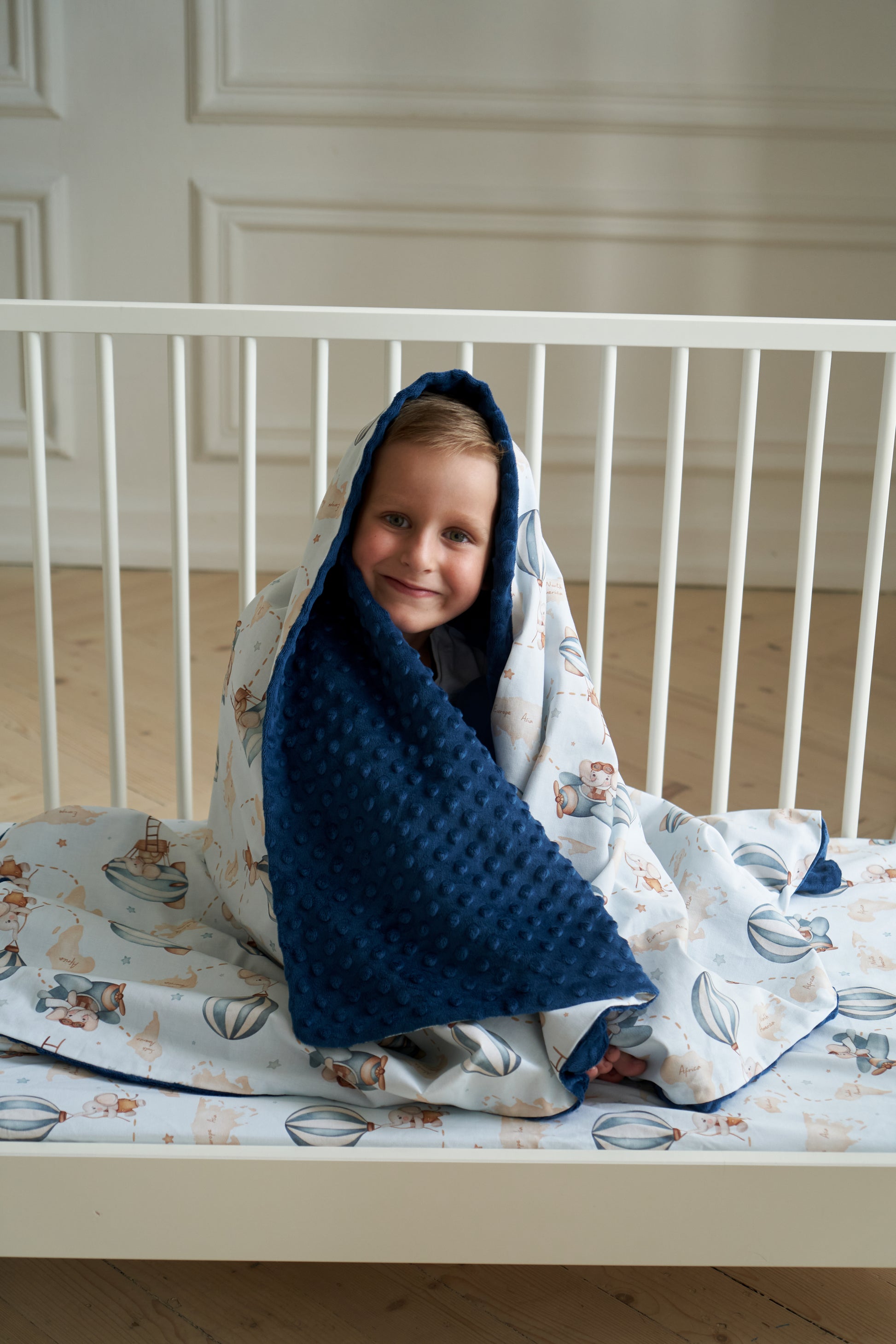 • 110×140 см — підходить для старших дітей (2–6 років), які використовують плед вдома чи під час ігор.