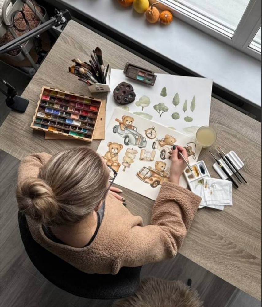 Дизайн. Принт Teddy Trip розроблений ексклюзивно для MYLOOMY талановитими українськими художниками. Його сюжет передає атмосферу пригод, використовуючи милих ведмедиків, автомобілі та елементи подорожей.