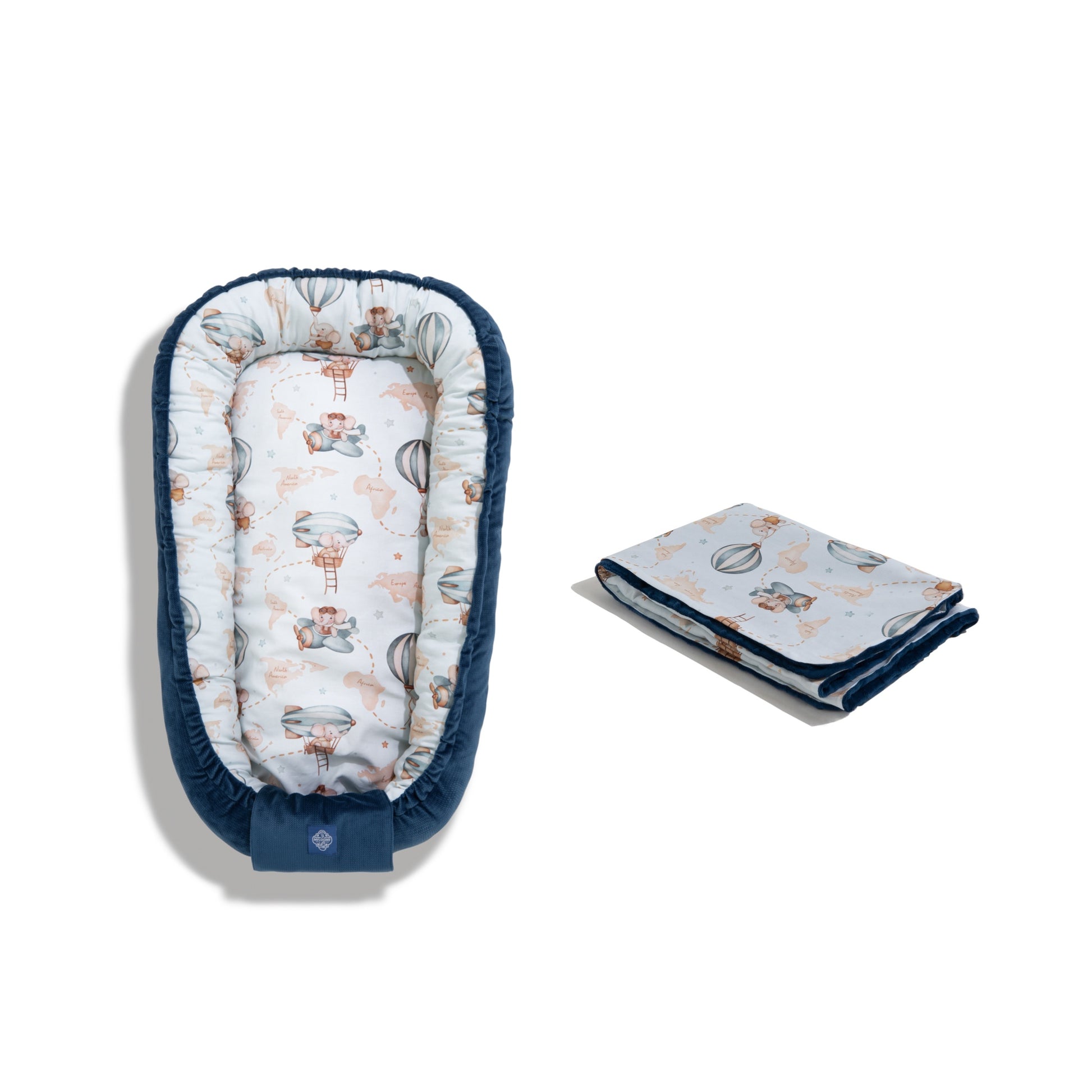 • Кокон для немовлят (90×65×30 см): забезпечує комфортний і захищений простір для сну дитини завдяки м’яким бортикам і регульованим зав’язкам.