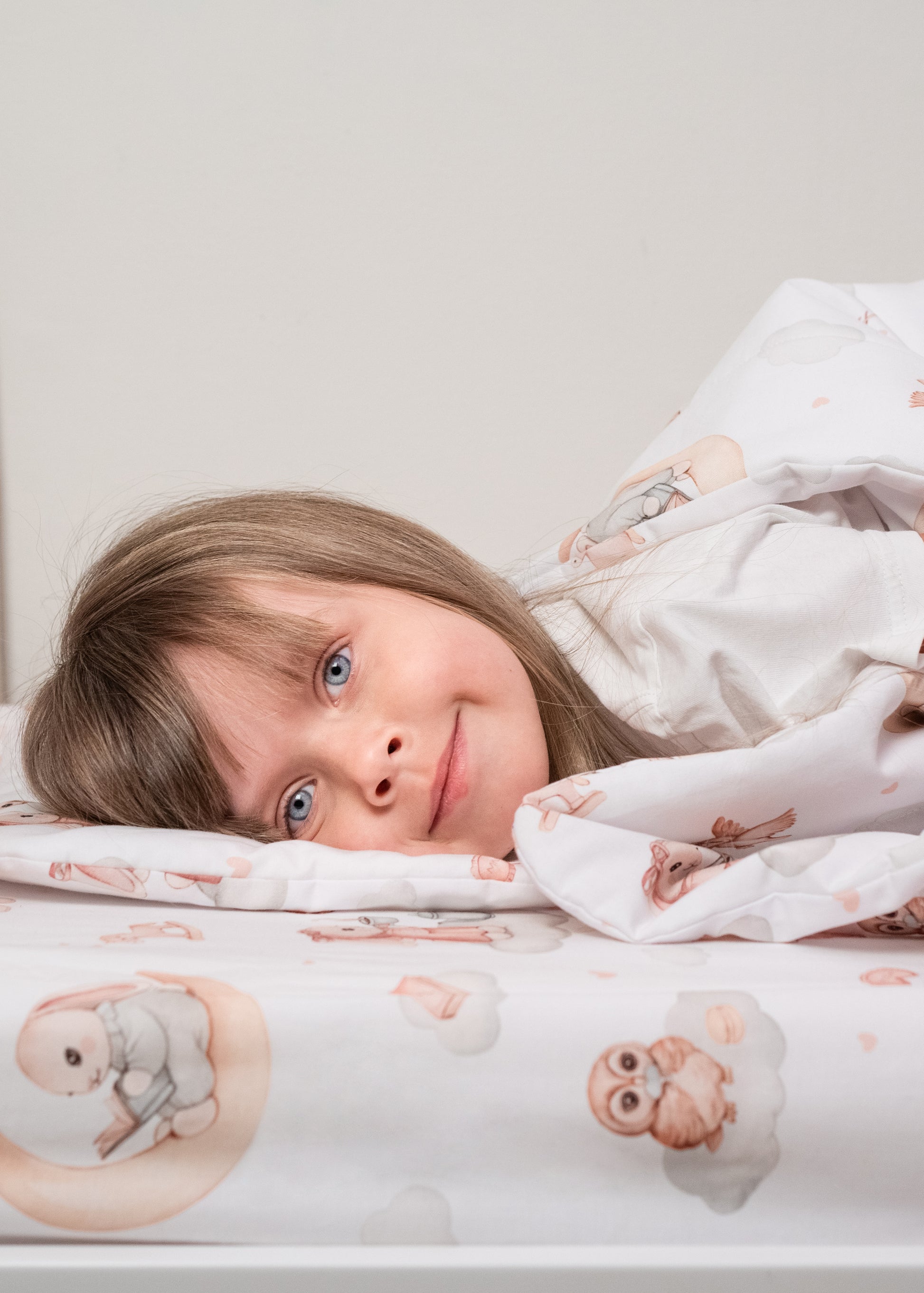 Дитяче простирадло на резинці від MYLOOMY створене для зручності та комфорту вашої дитини. Виготовлене з м’якої 100% бавовни європейського походження зі щільністю 160 ниток, воно ідеально підходить для дитячих ліжечок, забезпечуючи затишний мікроклімат під час сну.