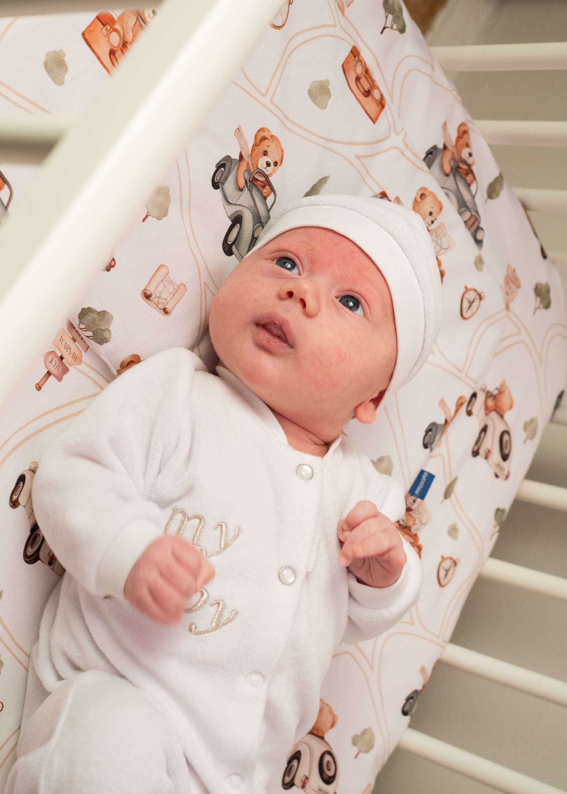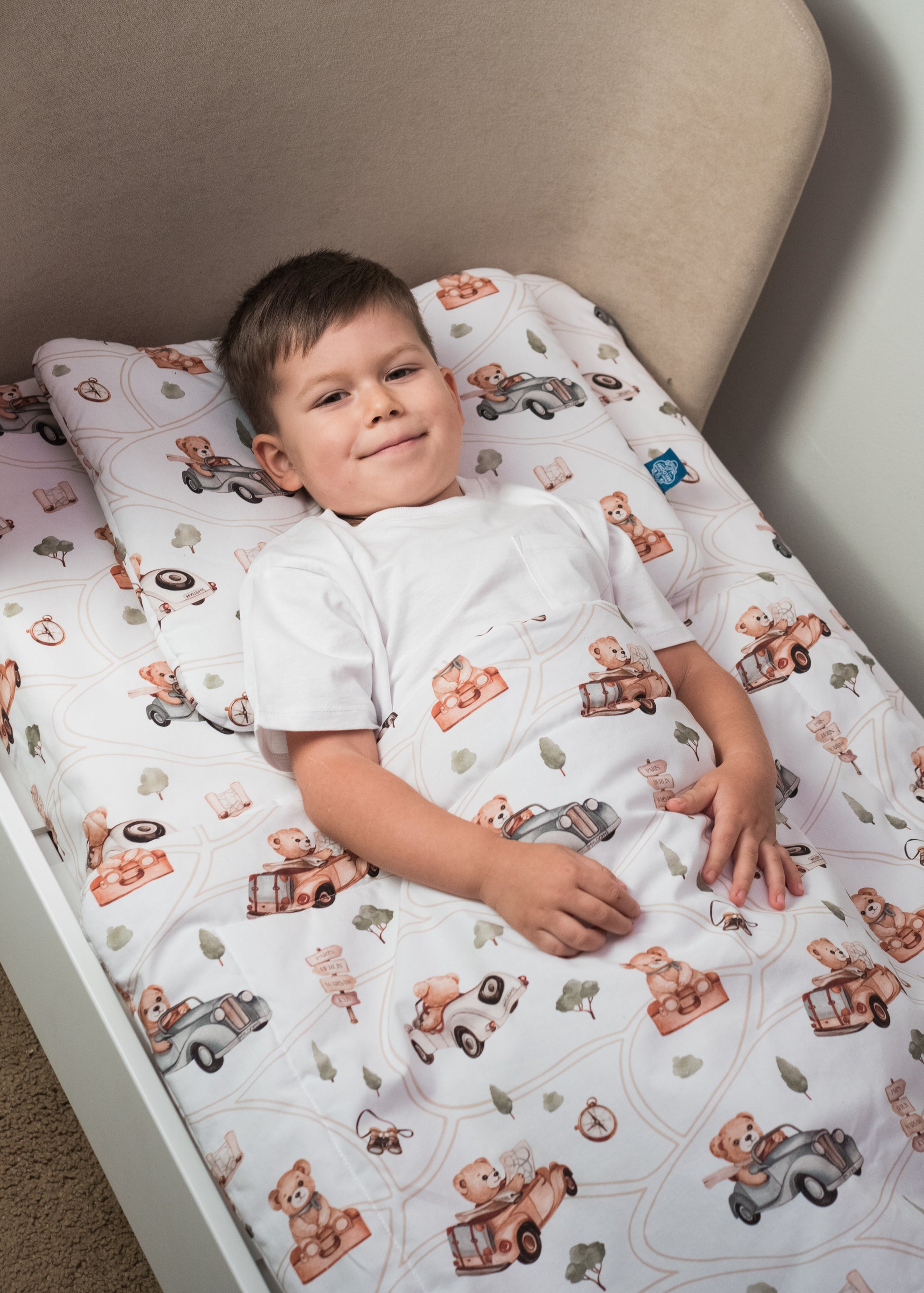 Ексклюзивний принт Teddy Trip створений спеціально для MYLOOMY українськими художниками. Веселі ведмедики, авто та елементи подорожей наповнюють дизайн атмосферою пригод, роблячи його цікавим і затишним для вашої дитини.